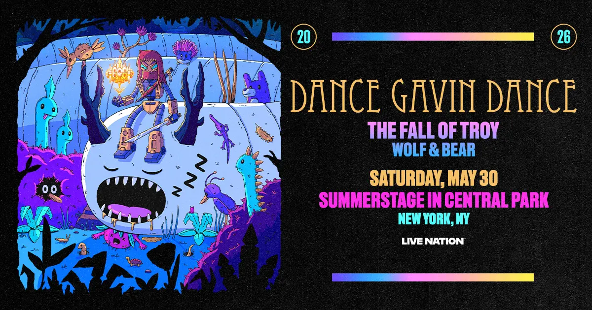 Sacramento-born band Dance Gavin Dance has been churning out the hits for more than 20 years. In that time, they’ve enjoyed four Billboard 200 Top 15 albums, billions of streams, and millions of record sales. The group is a powerhouse of alternative music, fusing funk, metalcore, pop, and more into a trove of sound, demonstrated on their 2025 album Pantheon. The Fall of Troy and Wolf & Bear will open the evening.